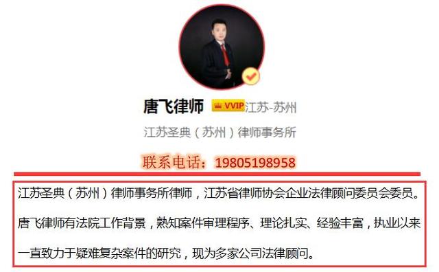 江苏圣典(苏州)律师事务所唐飞律师解答: