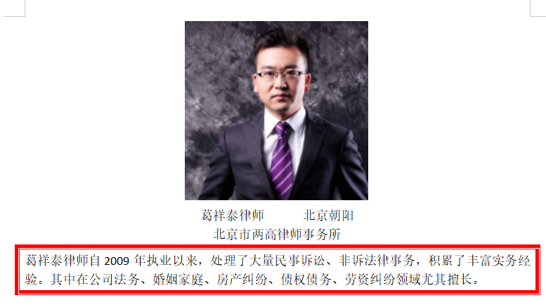 北京市两高律师事务所葛祥泰律师解析: